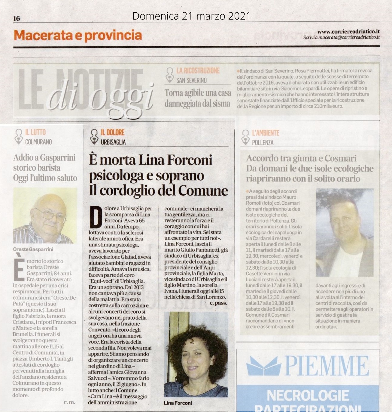 Corriere Adriatico – Domenica 21 marzo 2021